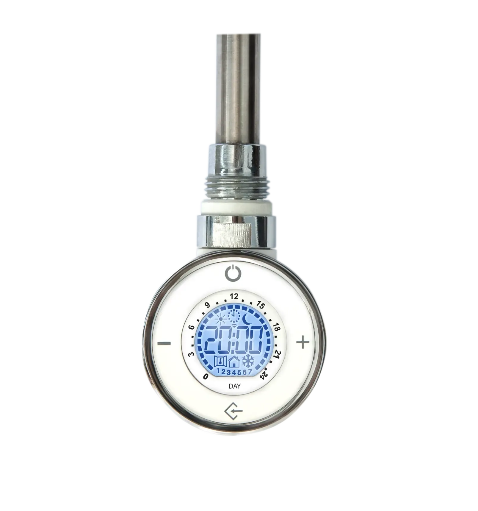 The Smart Evolution thermostat is a technologically advanced solution for those seeking precise and efficient heating control. Designed to integrate seamlessly with heated towel rails and compatible with a wide range of heating elements, it combines innovation, compact design, and an intuitive interface for an unparalleled user experience.