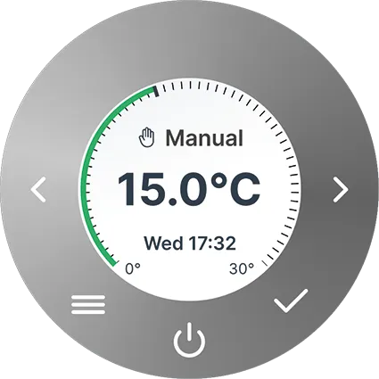 One of the standout features of the Levante thermostat is its large 1,28-inch, 240×240 pixels, tft display, which ensures clear and detailed visualization of every parameter. The display, crafted from high quality components, guarantees impeccable graphic performance and allows users to effortlessly monitor settings, even in low-light environments.